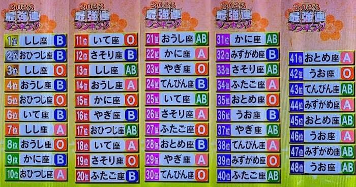 2024年開運HAPPY占い<星座×血液型>あなたの運勢をチェック!-SODANE(出典:SODANE)【星座x血液型別】一生傍にいさせて「離れられない2人」ランキング<第1~3位>-Peachy(ピーチィ...-livedoor(出典:livedoor)『ダウンタウンDXDX芸能界2024最強運ランキング!』人気占い師・水晶玉子による“星座×血液型”総合運ランキングを...-Yahoo!ニュース...