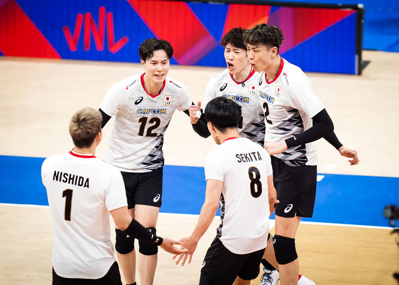 日本のスタメンは、セッター関田誠大、オポジット西田有志、アウトサイドヒッター石川祐希、大塚達宣、ミドルブロッカー山内晶大、小野寺太志、リベロ山本智大。