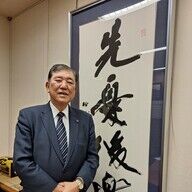 鳥取県知事や自治相を務めた父・石破二朗氏と親しかった田中角栄元首相の勧めで政界入りを志し、86年の衆院選で初当選。「政治の師」と仰ぐ田中のポートレートは、部屋に入って左手の書棚に掲示されていた数人の歴代首相の中でも、1番手で貼られていた。右手の壁には「先憂後楽」という書が額装されていた。北宋(中国の王朝)の忠臣が残したとされる「為政者の心得」を説いた言葉。「為政者は人々(民)に先だって憂い、人々が楽しんだ後で自分も楽しむ」という意味だという。