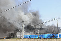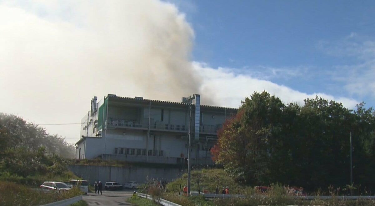 キノコ工場で火災。20時間がたった30日午後5時現在も消火活動が続いています。