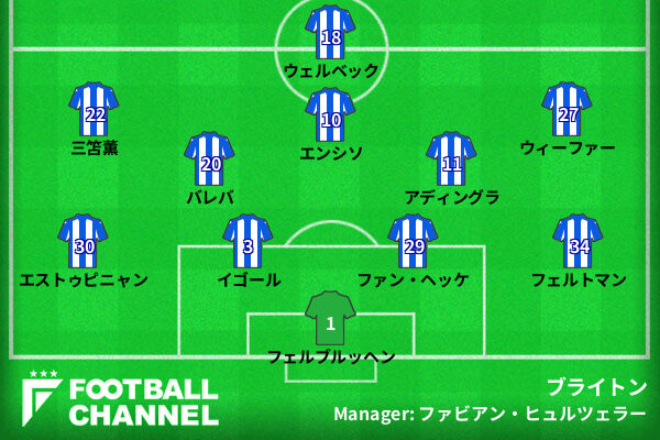 さらに三笘は前半36分、ウェルベックとのパス交換から左サイドを縦へ抜け出し、絶妙なクロスボールを送る。フリーとなったカディオグルが直接シュートを狙ったが、ゴール枠を外して追加点とはならなかった。