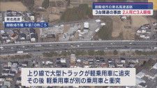 警察と消防によりますと、この事故でいずれも衝突した車に乗っていた30代の女性1人と20代の男性2人の合わせて3人がけがをして市内の病院に運ばれました。搬送時、3人とも会話はできる状態だったということです。