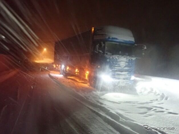 一時30台のトラックが立ち往生しました。5日未明から通行止めとなっています。