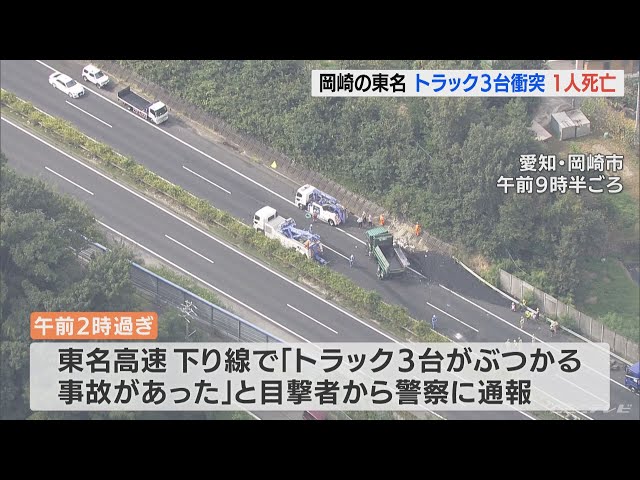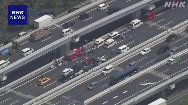 午前8時ごろ、東名高速上り・海老名ジャンクション付近で「トラック同士の事故」などと110番通報が相次ぎました。