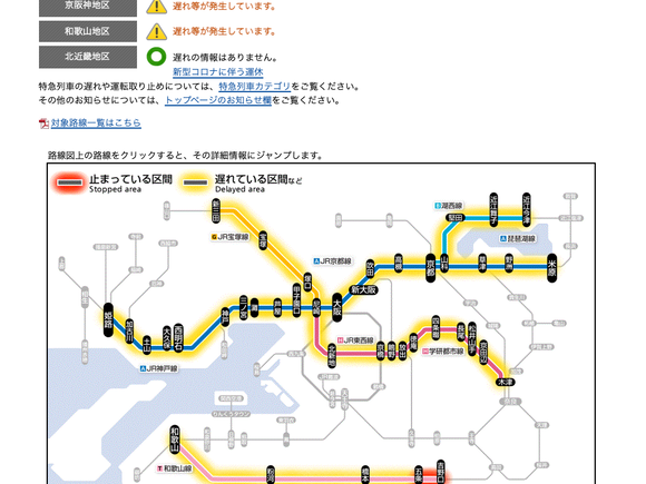JR京都線京都ー大阪まで順次運転見合わせ