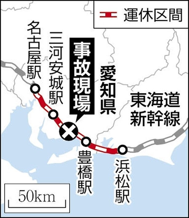 JR東海によりますと、東海道新幹線は豊橋駅構内でポイント不転換が発生したため、浜松〜三河安城の上下線で一時運転を見合わせていましたが、午前9時50分に運転を再開しました。