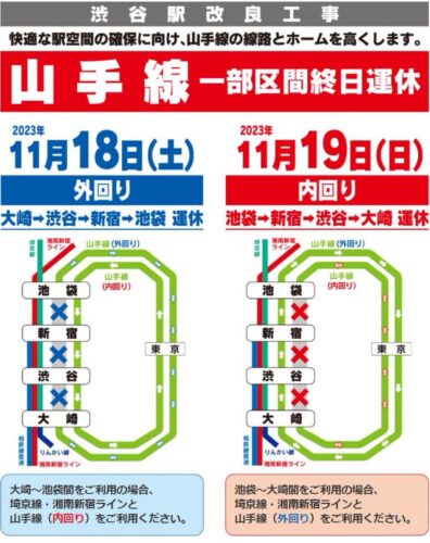 JR東によると、山手線は外回りの上野―大崎間が19日の始発~20日の正午ごろ、内回りの大崎―上野間が20日の始発~正午ごろそれぞれ運休。京浜東北線は東十条―品川間が19日の始発~20日の正午ごろ運休となる。