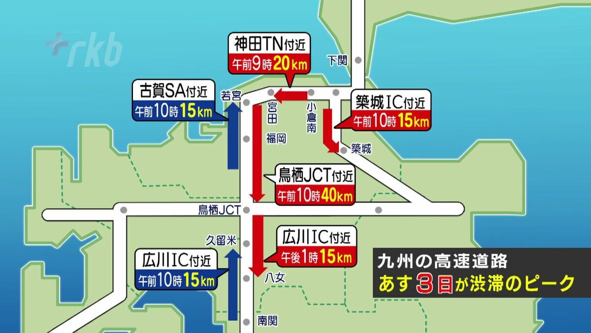 | 【九州の高速道路・渋滞情報】(5日午後1時時点)九州道上り 福岡ICから2キロの渋滞 …半4連休の3日目です。 5日は主に上りの渋滞が予想されています。 5日午後1時時点の渋滞情報 【九州道・上り】・福岡IC〜 2キロ… (出典:RKB毎日放送) |