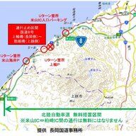 通行止めによる代替路として、北陸自動車道の一部区間で通行料を無料にする措置がとられれています。