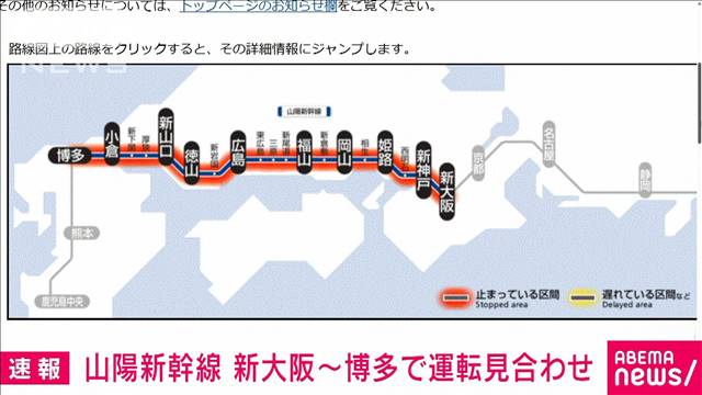 岩国〜徳山駅間の下り線でも、一部列車に5〜25分の遅れが出ています。