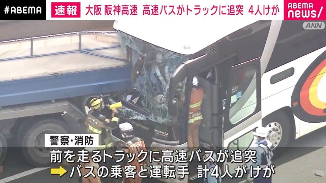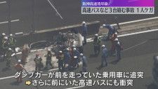 警察によりますと、ダンプカーが前を走っていた乗用車に追突し、さらに前にいた高速バスにも衝突しました。