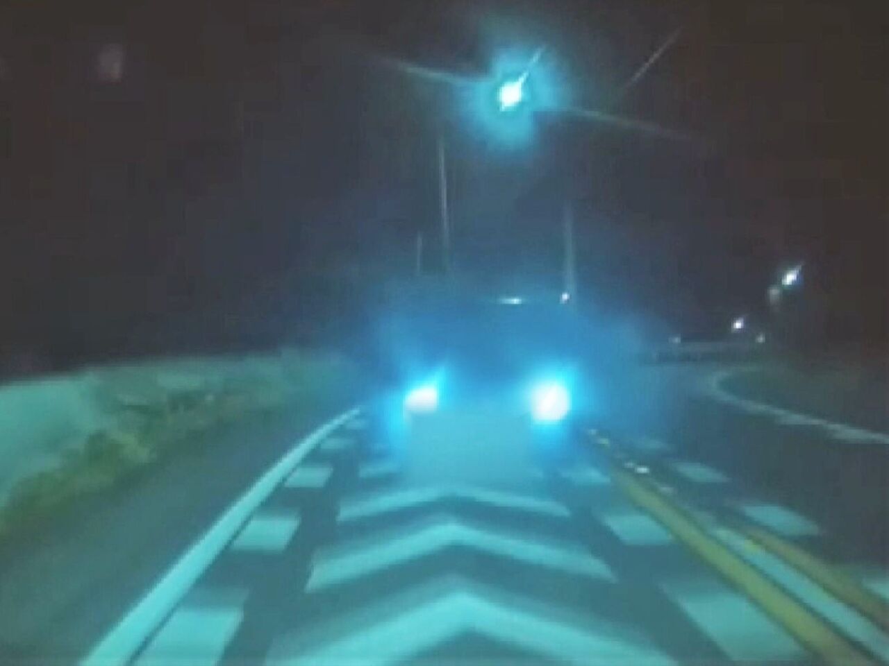 撮影者によると、事故の直前に白い車はカーブにさしかかったところで、なぜか車線を飛び出し、そのまま直進。