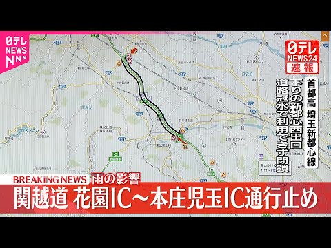 | 関越道「花園IC~本庄児玉IC」上下線で通行止め 雨の影響 …日本道路交通情報センターによりますと、雨の影響で、関越道の花園インターチェンジから本庄児玉インターチェンジの間の上下線が、午後4時半前から通行止めと… (出典:日テレNEWS NNN) |