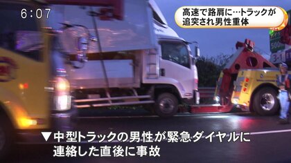 事故で通行止めとなったのは磐越自動車道上りの磐梯河東インターチェンジから猪苗代磐梯高原インターチェンジまでの間です。6日午後8時50分頃、ネクスコの管制から「管制モニターで事故車両が確認できる」と通報がありました。警察などによりますと、故障して路肩に止まっていた大型トラックに後ろから来た大型トラックが衝突したということです。後続のトラックの助手席側半分が大破状態だということです。消防によりますと、この事故で30代男性が下腹部の痛み、50代男性が足と額の痛みを訴えていますが、2人とも意識はあるということです。この事故で磐越道上りの一部区間が7日午前1時25分までの4時間あまり通行止めとなりました。