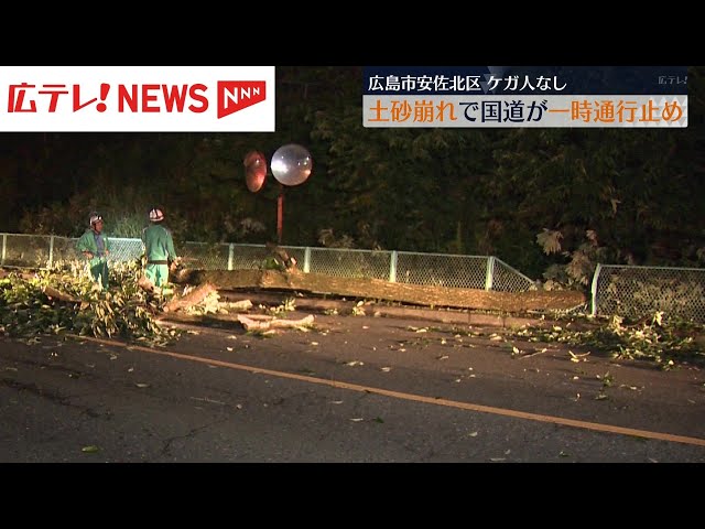 警察によりますと道路を走っていた軽乗用車に土砂が落下し、運転していた人がけがをしている模様です。