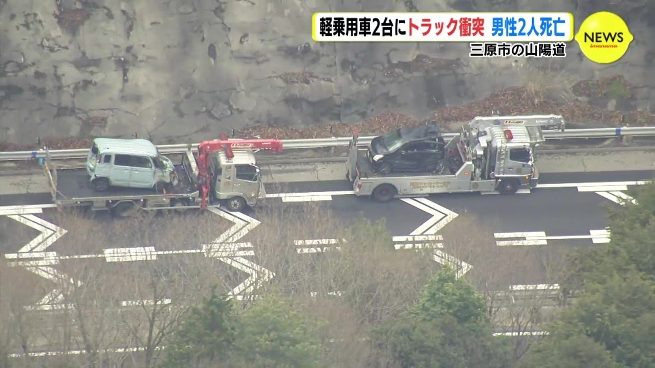 山口県岩国市周東町の山陽自動車道上り線で21日夕に発生した車両4台が絡む事故で、山口県警高速道警察隊は26日、死亡した軽乗用車の2人はいずれも福岡県北九州市の大学生女性(20)と、大学生女性(21)と発表した。死因はいずれも焼死だった。