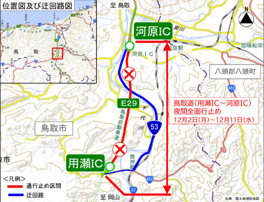 この事故により山陰道上り線 泊東郷インターチェンジから青谷インターチェンジまでの間が通行止めとなっています。