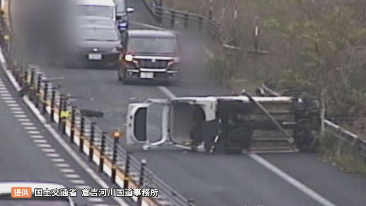 事故があったのは、山陰道の上り線、鳥取市青谷インターチェンジの西側にある吉川トンネル付近です。