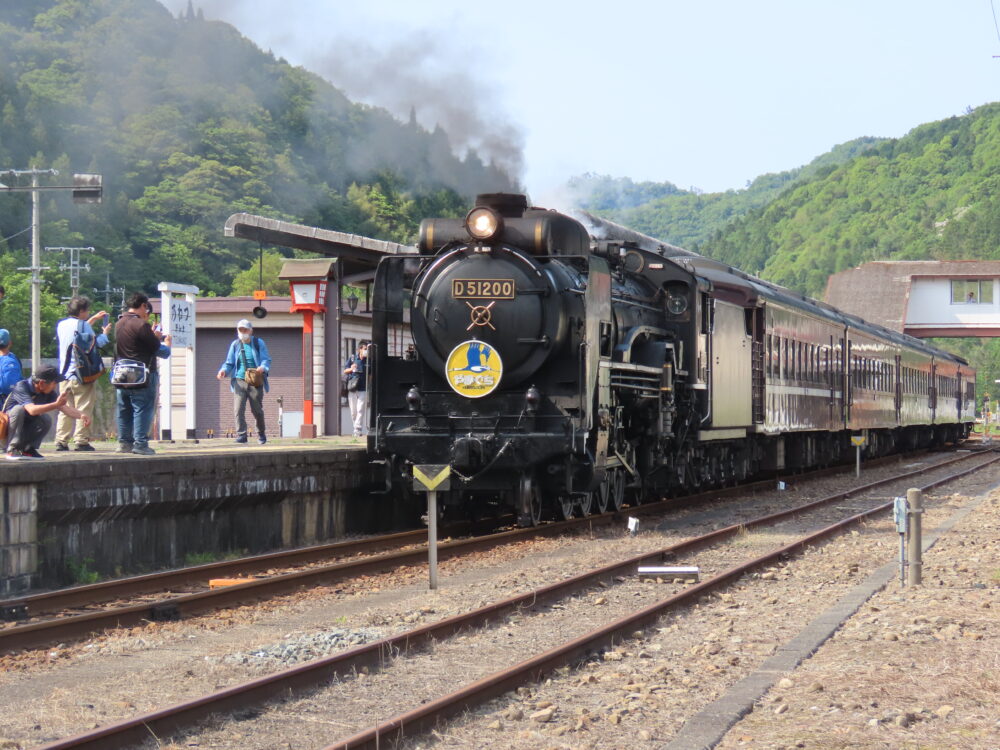 19日は午前4時半に新山口駅を出発して津和野駅へ向かい、10時50分から復路で新山口駅を目指した。沿線では、最後尾にディーゼル機関車やまぐち号を付けて走るSLを撮影しようと、聞き付けた鉄道ファンの姿も多く見られた。