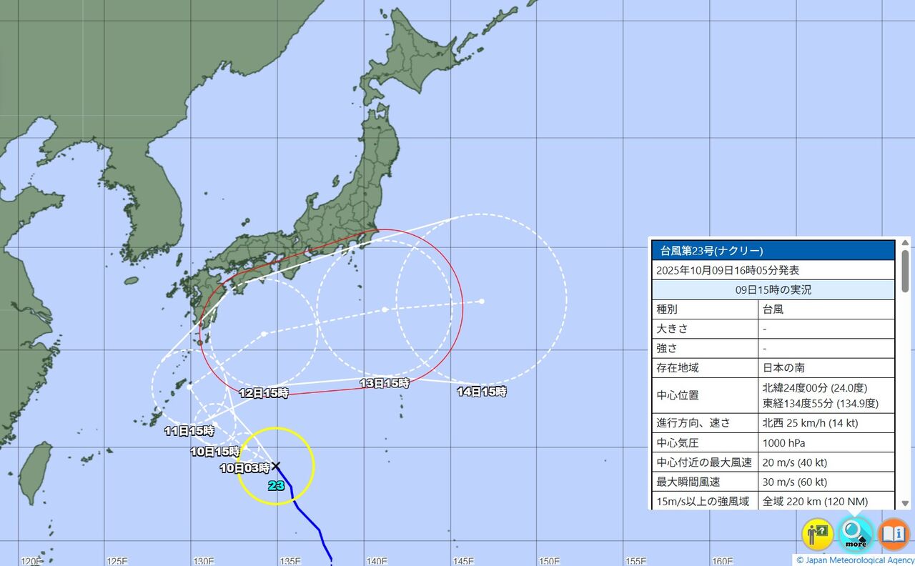 現在、台風23号(ナクリー)が接近しており、三連休に日本列島への影響が懸念されています。特に九州や沖縄地方は直撃の可能性が高く、事前の備えが不可欠です。進路や勢力の変化に注意を払い、安全第一で行動することが重要です。