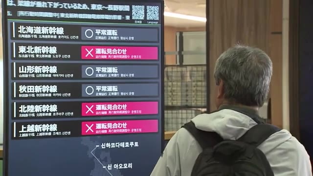 JR東日本によると、10日午前11時41分現在、東北新幹線は大宮―小山間で架線に支障物がある影響で、大宮―仙台間の上下線で運転を見合わせている。