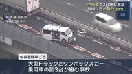 14日午前8時半ごろ、多治見市の中央道上り・虎渓山パーキングエリア付近で、大型トラックとワンボックスカー、そして乗用車の合わせて3台が絡む事故がありました。