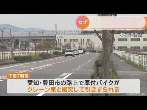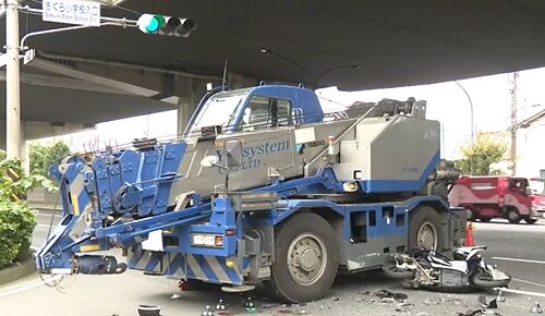 この事故でバイクを運転していたペルー国籍の29歳の男性がクレーン車の下敷きになり意識がない状態で病院に搬送され、その後、死亡が確認されました。