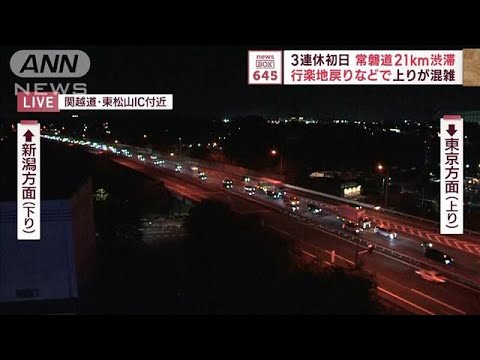 NEXCO東日本によると、19日午後4時39分現在、常磐自動車道(上り)は、三郷ジャンクション(JCT)付近を先頭に21キロの渋滞が発生している。