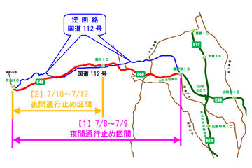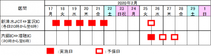中部横断道の富沢インターチェンジと新清水ジャンクションの間の上下線が午後8時から翌日の午前6時まで通行止めになります。