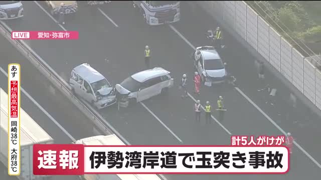 警察によりますと、15日午前8時20分ごろ、名古屋市港区の伊勢湾岸道下り・名港潮見インターチェンジ付近で、「玉突き事故が発生」などと110番通報が相次ぎました。