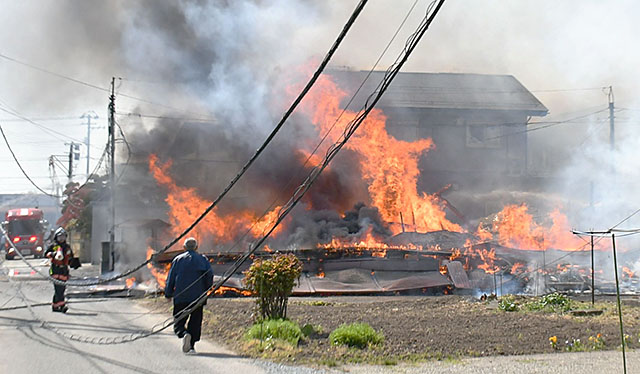 消防によりますと火事があったのは木造2階建ての建物とみられ、現在も延焼中です。