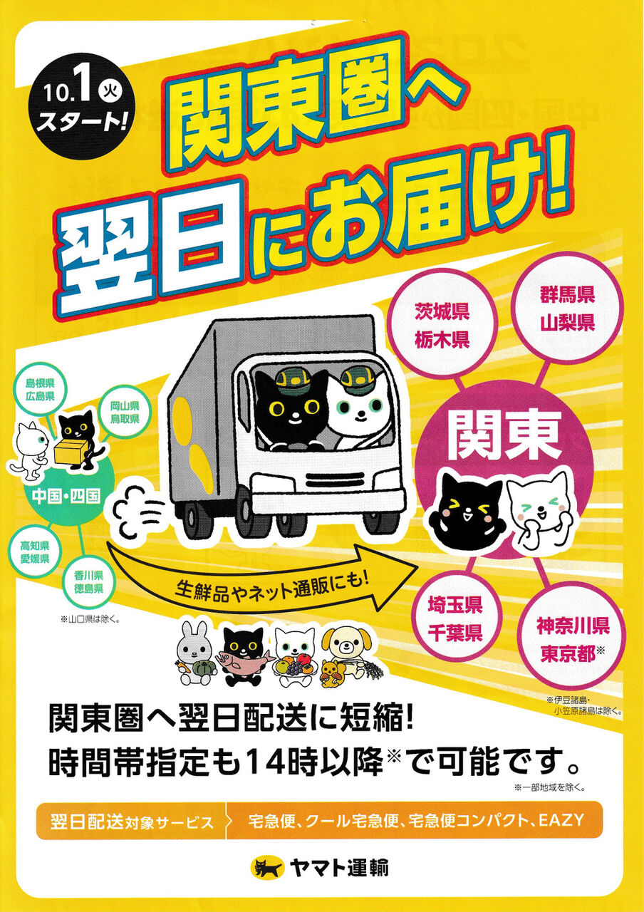 | ヤマト運輸、東京・関東⇔関西間の発着荷物に遅延発生の可能性。12/8以降の新名神高速道路における夜間通行止めの影響 …ヤマト運輸は、12月8日から新名神高速道路で実施される夜間通行止め工事に伴い、荷物の配送に遅延が発生する可能性があると発表した。影響は東京・関東と関… (出典:ネットショップ担当者フォーラム) |