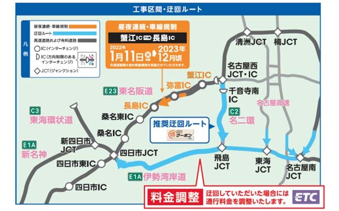 発生区間 小幡IC→大森IC 規制車線 路肩 発生時刻 12/11 12:29 事故形態 接触 関係車両 大型1台程度 小型1台程度 処理状況 処理中