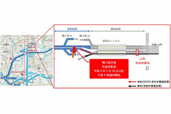 影響で、鴨川東ICは川端通からは出入りできないが、十条通からは出入り可能。解除の見通しは立っていないという。