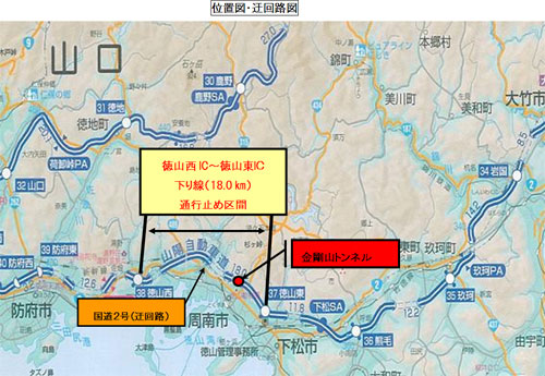 最近、山陽道の徳山西から徳山東ICにかけて、桜谷トンネル付近で事故が発生しました。その影響で約6キロの渋滞ができ、通行される方々に大変なご不便をおかけしています。事故渋滞は予想以上に長時間続くこともありますので、運転される方々は十分に注意し、時間に余裕を持ってお出かけください。