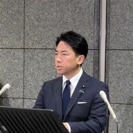 北朝鮮のミサイル発射を受け、記者団の取材に応じる小泉防衛相(4日、防衛省で)