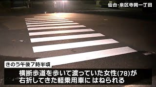 同署によると、女性は横断歩道を渡っていたところ、南進していた車と衝突。腰などを強く打ち、重傷とみられる。女は調べに容疑を認めているという。
