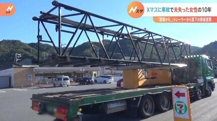 落ちた資材は、9メートル×2.5メートルの厚みのある鉄板で、トラックの荷台に複数重ねて積んでいたということです。