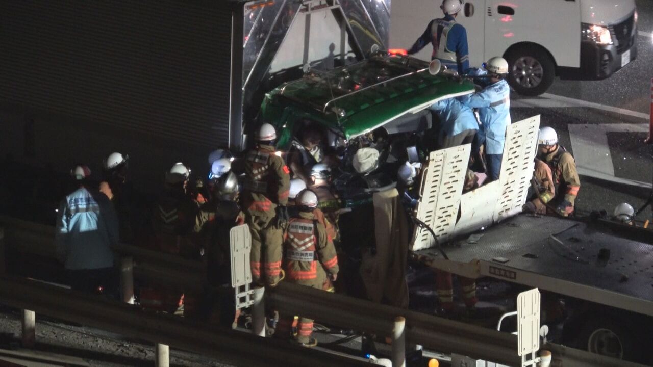 走行中のトラックが前方のトラックに追突し、そのはずみで、さらに前にいた乗用車4台も巻き込まれたとみられている。