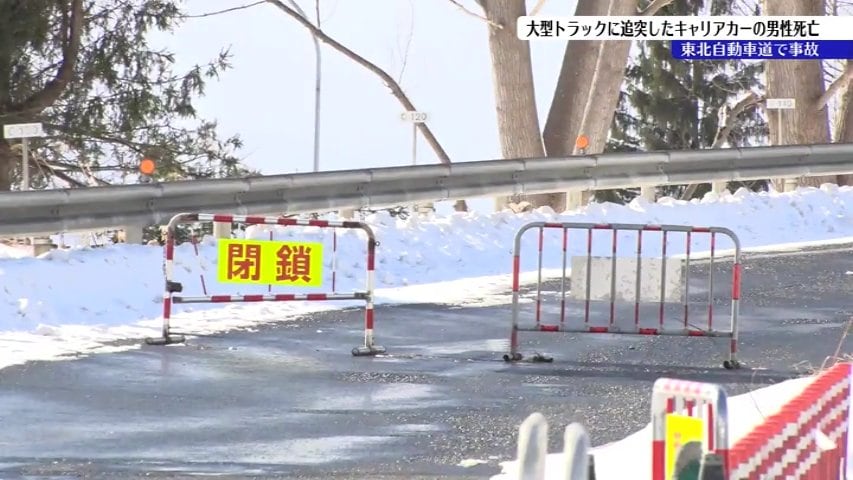 亡くなったのは仙台市宮城野区の会社員、川嶋正道さん(56)です。この事故は21日午前7時25分ごろ、金ケ崎町西根南羽沢付近の東北自動車道下り線で、川嶋さんが運転するキャリアカーが前方で停車していた大型トラックに追突したものです。川嶋さんは外傷性ショックでその場で死亡が確認されました。事故当時は雪が降り路面には雪があったということです。警察が引き続き事故の原因を調べています。