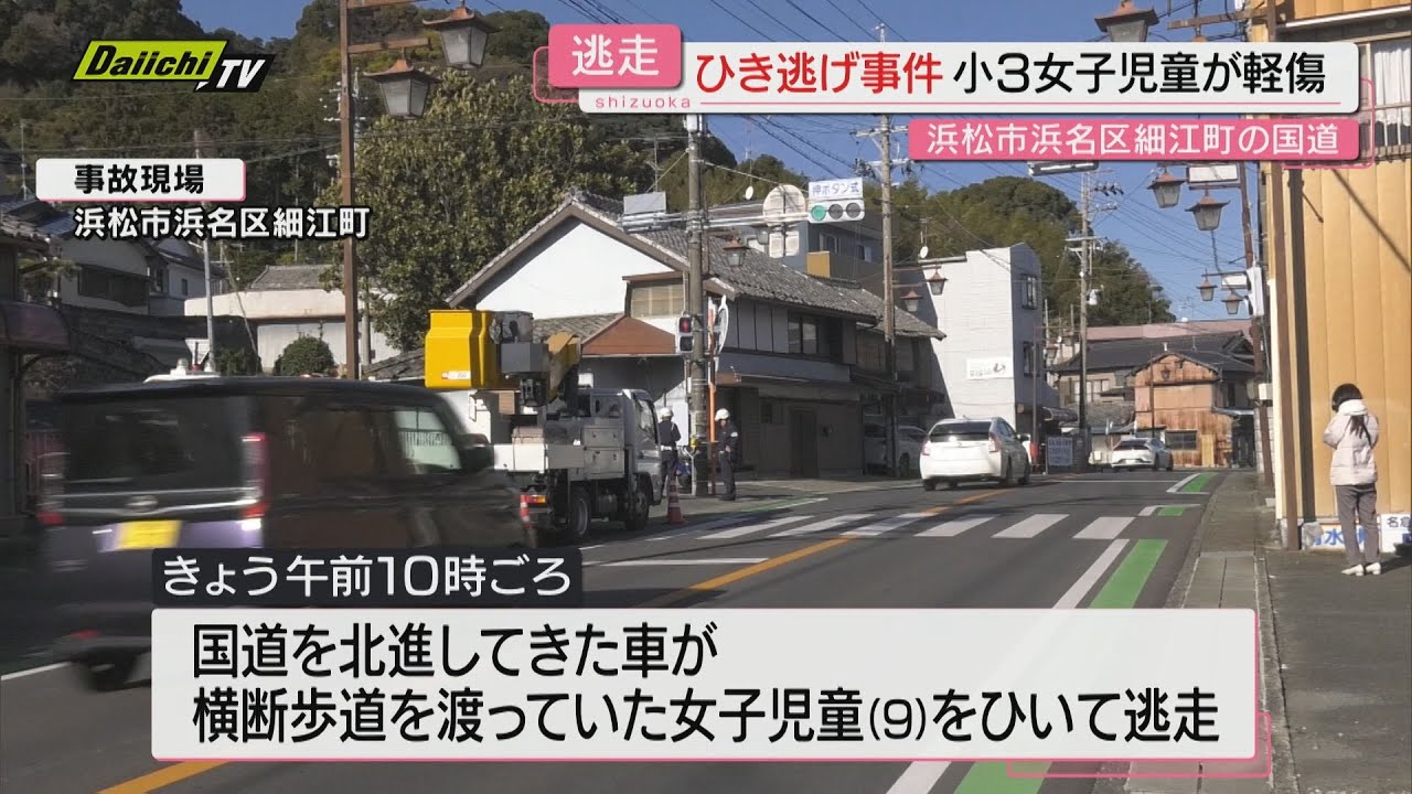 松江警察署によりますと、横断歩道上でトラックが子供をはねて逃げたということで、通行人から通報がありました。車両は23日午後5時の時点で逃走中で、警察で歩行者の身元の特定を進めると共に逃げた車の行方を捜査しています。