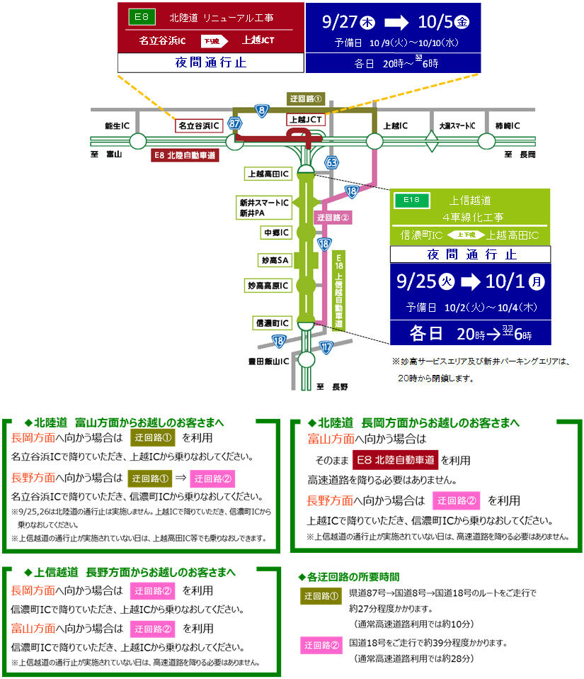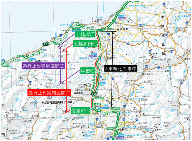 上信越道と国道18号は雪のため通行止めとなっています。