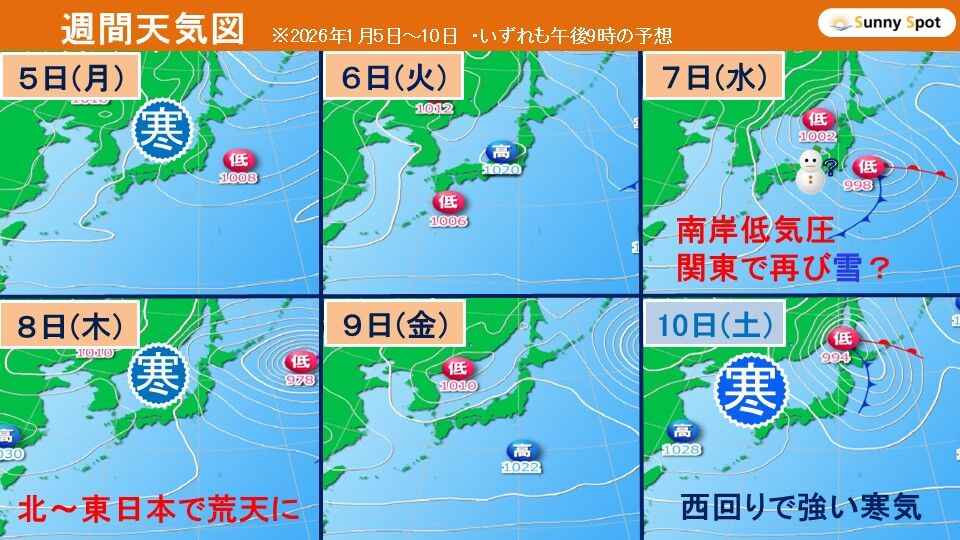 気象庁は「普段雪の少ない西日本や東日本の太平洋側でも雪が降る所がある」との予想を示しています。