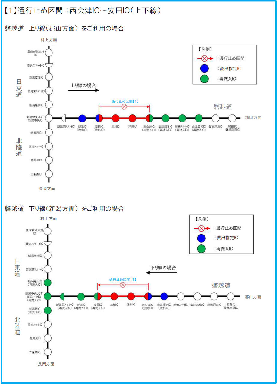 路線区間:E49 磐越道(上下線)西会津IC~津川IC 解除:6時00分 事象:緊急工事(除雪・排雪) 最新の交通情報はこちら