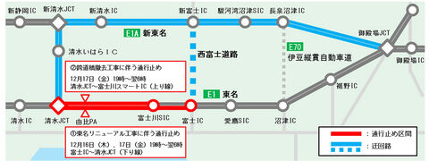 E1A 新東名 新御殿場IC~御殿場JCT間において、雪による通行止めを行っています。 ご迷惑をおかけしますが、ご理解とご協力のほどよろしくお願いいたします。