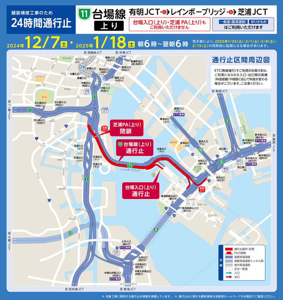 規制区間 有明JCT付近 原因 落下物 規制内容 1車線規制