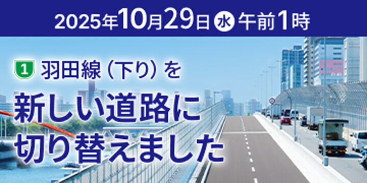 羽田線の更新下り線が完成したのにあわせ、これまで嵩上げしていた舗装を盤下げするために実施するもの。工事期間中は通行止め区間や周辺の一般道路で渋滞・混雑を予想しており、公共交通機関の利用など渋滞緩和への協力を呼びかけている。