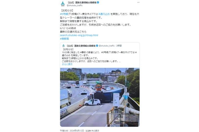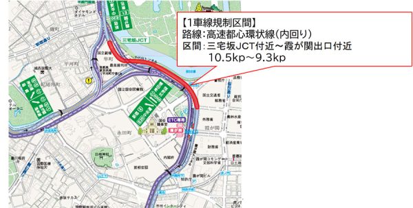 規制区間 阪東橋付近 原因 落下物 規制内容 1車線規制